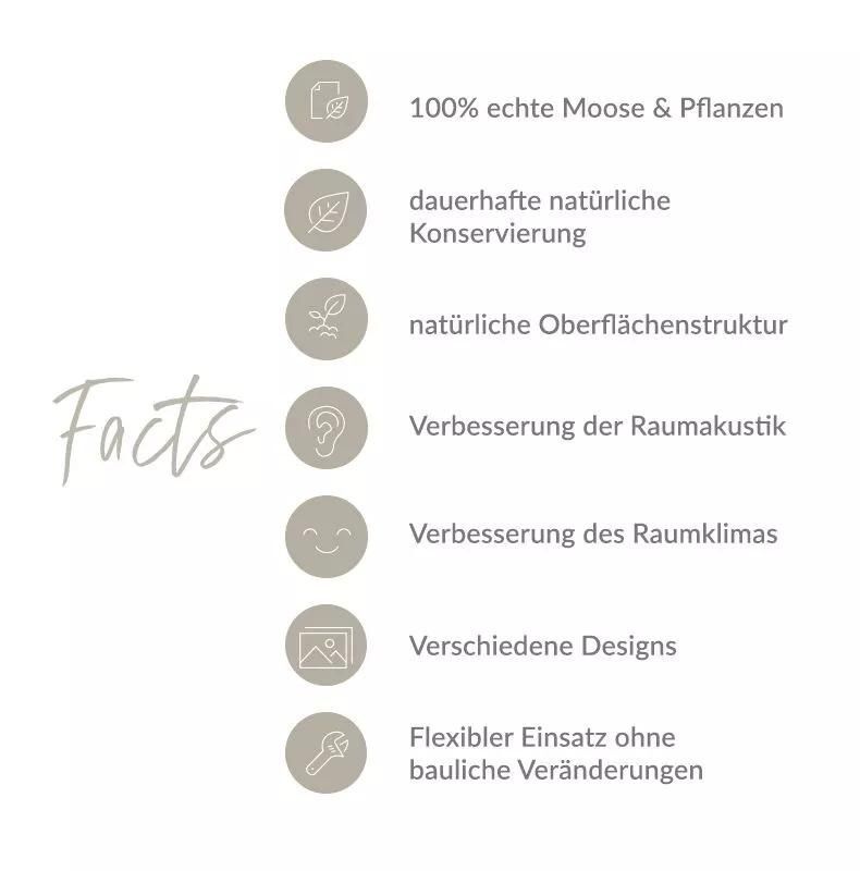 Innenraumakustik wird oft unterschätzt und ist erst ein Thema, wenn die Räume schon in Verwendung sind. Dabei ist es das A und O, um eine Wohlfühlatmosphäre für Menschen zu schaffen, die an diesem Ort konzentriert und stressfrei arbeiten und leben sollen. Moos verfügt über hervorragende schallabsorbierende Eigenschaften. Besonders hohe Frequenzen werden gut gedämpft. Beispielsweise ist das styleGREEN Islandmoos schallschutzzertifiziert nach ISO 354 und sorgt somit für bis zu 50% Schallabsorption.